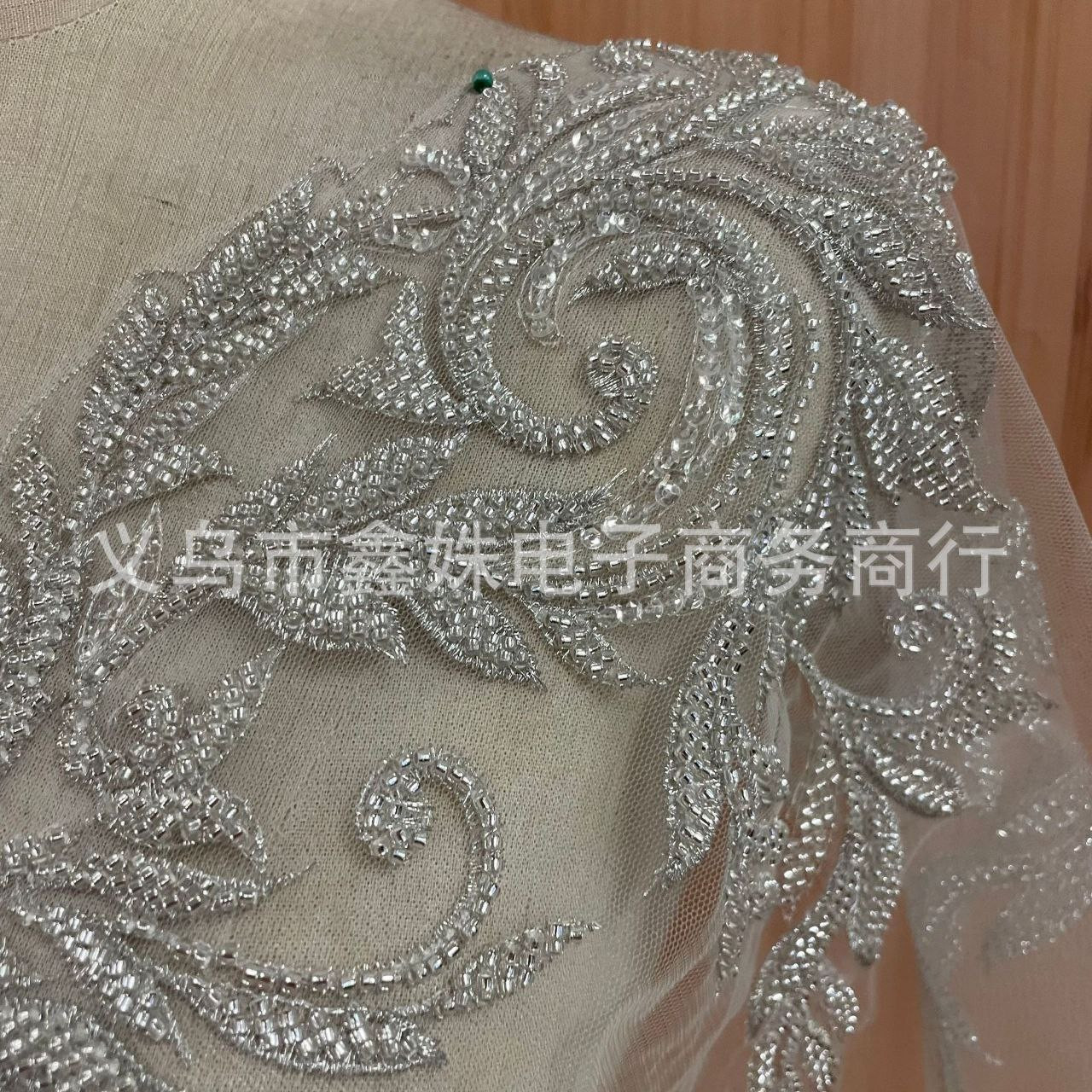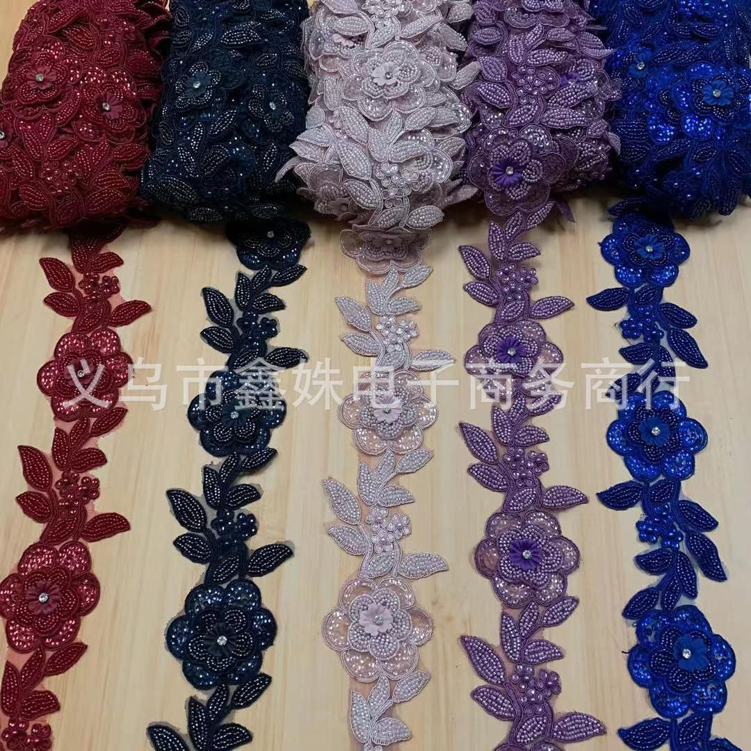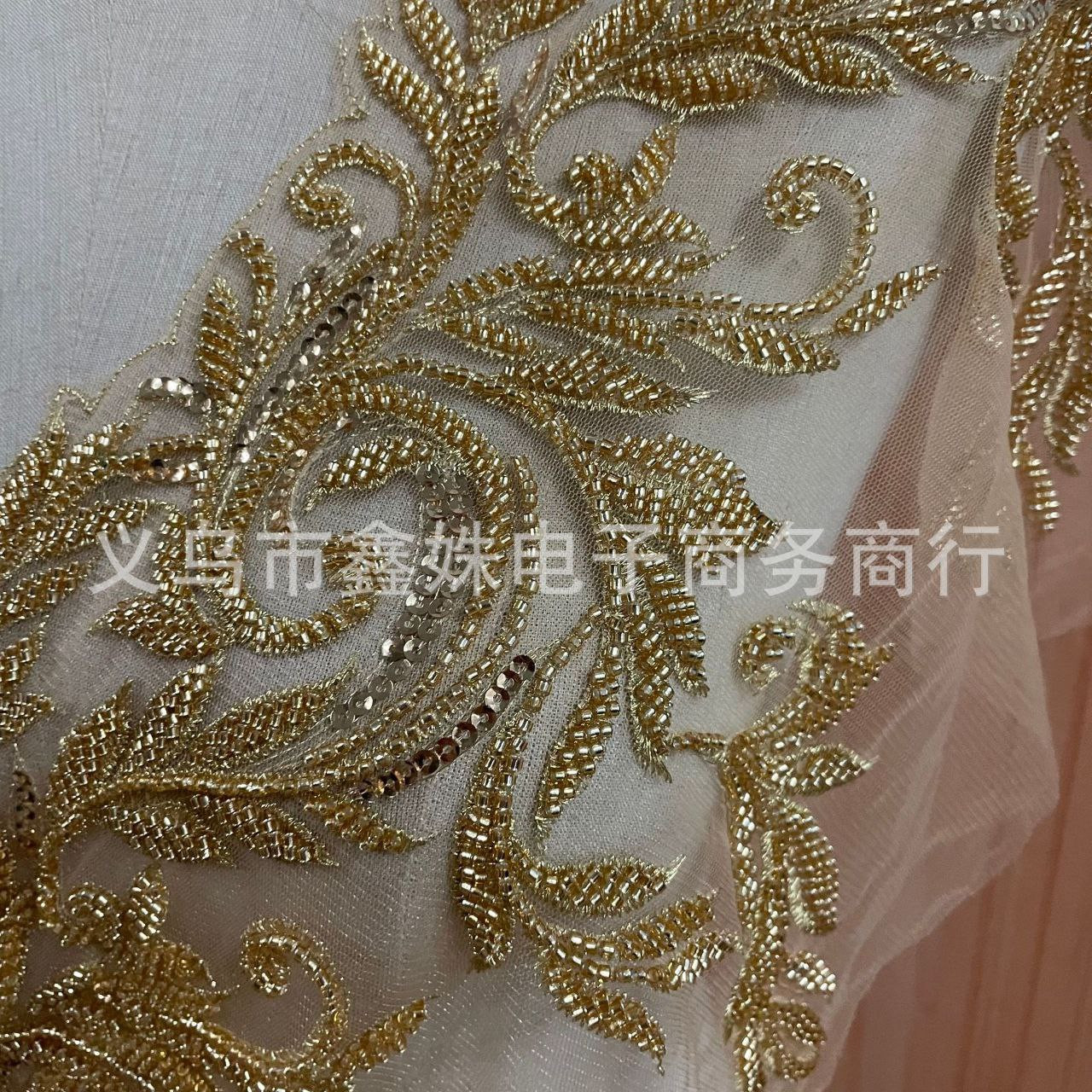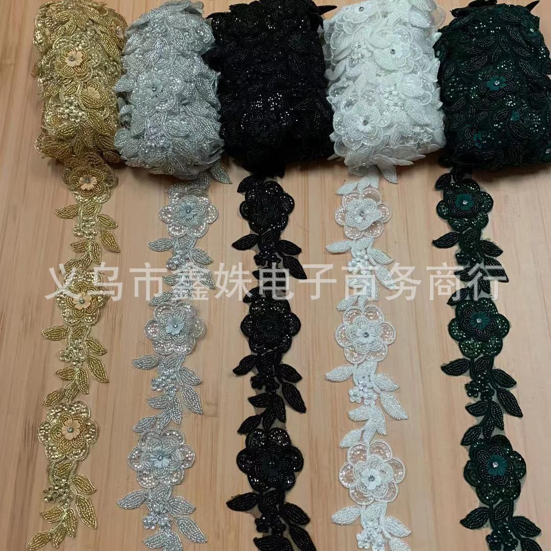 Broderie perlée code à barres or dentelle dentelle paillettes accessoires de robe de mariée blanc de haute qualité nouveau fond net de broderie perlée