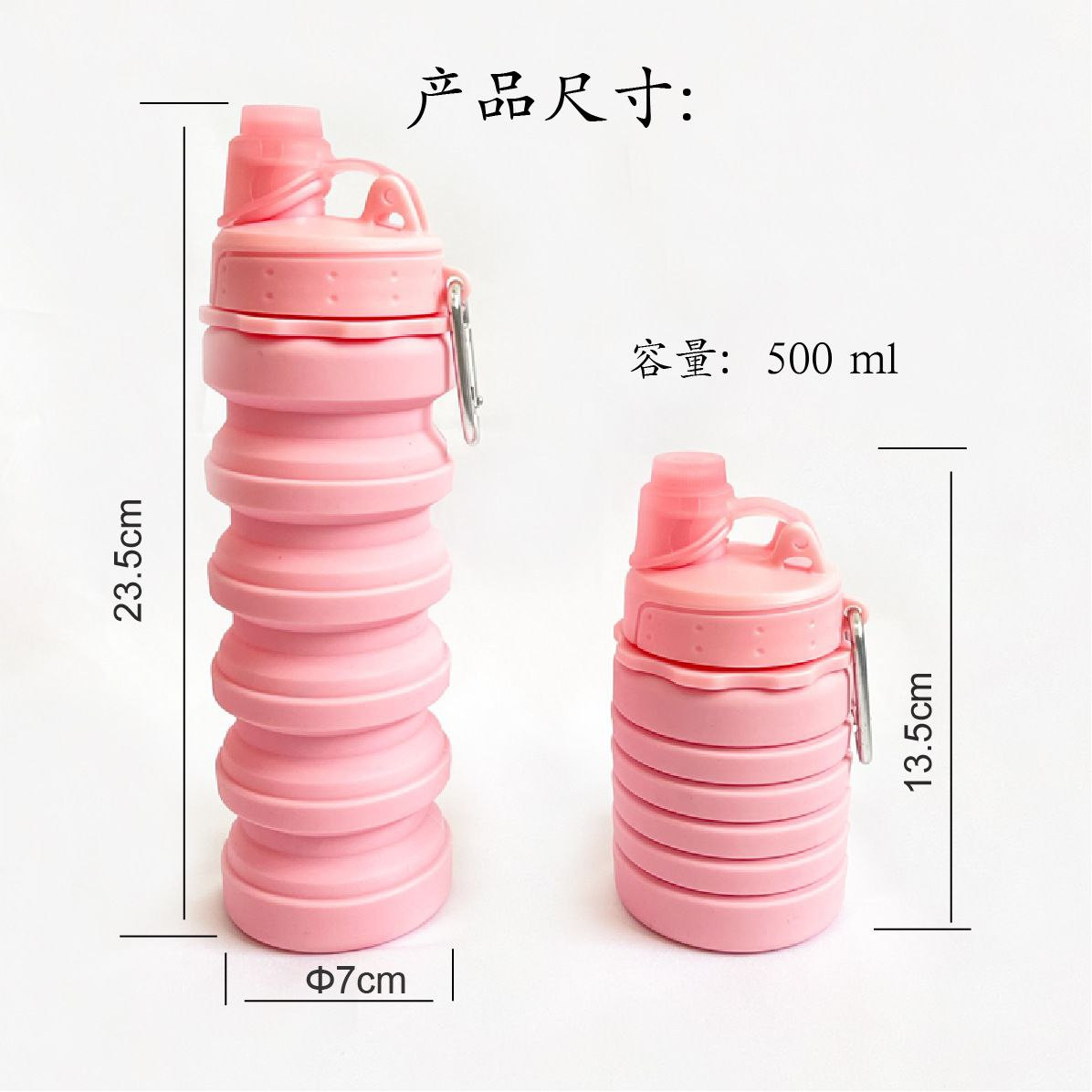 Tasse d'eau rétractable pliable en Silicone sports de plein air voyage bouteille d'eau portable bouteille d'eau compressible de qualité alimentaire 500ml