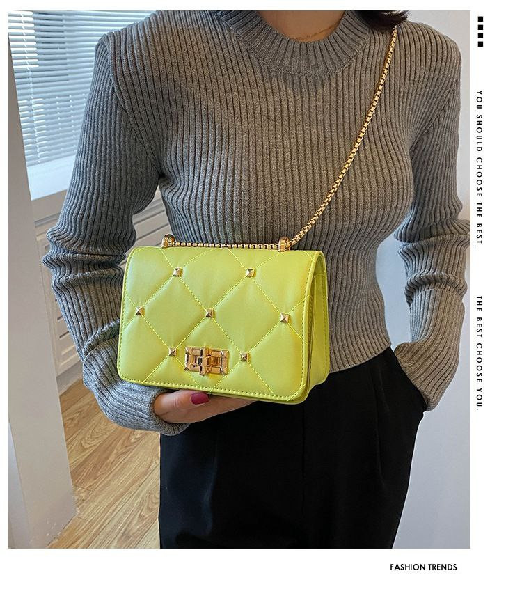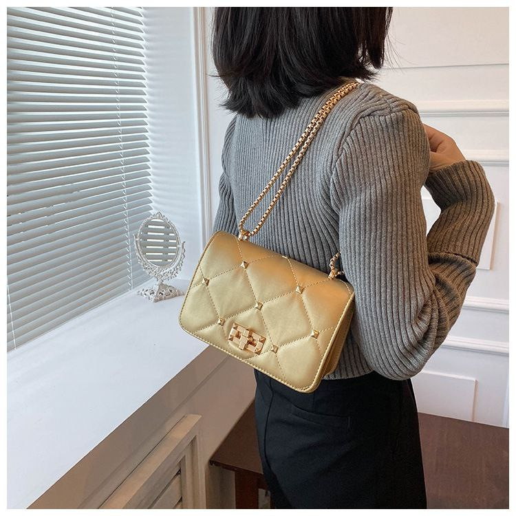Sac de nouvelle tendance simple texture à la mode populaire chaîne bandoulière simple épaule petit sac carré pour femme