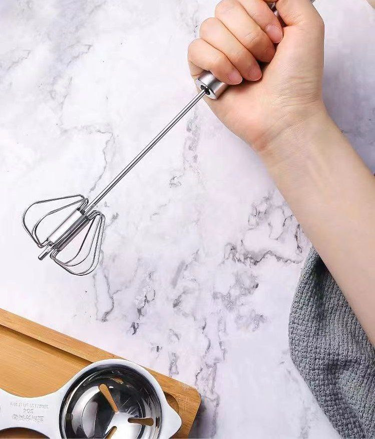 Batteur à œufs semi-automatique en acier inoxydable mélangeur à œufs à crème rotatif manuel de batteur à œufs domestique