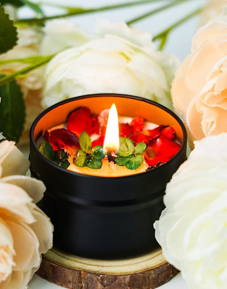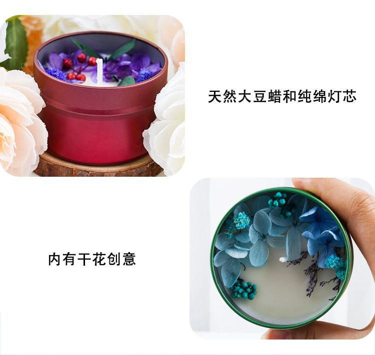 Bougie d'ambiance de fleurs séchées personnalisée, cadeau d'anniversaire de mariage, ensemble de couleurs, bougie d'aromathérapie haut de gamme pour yoga
