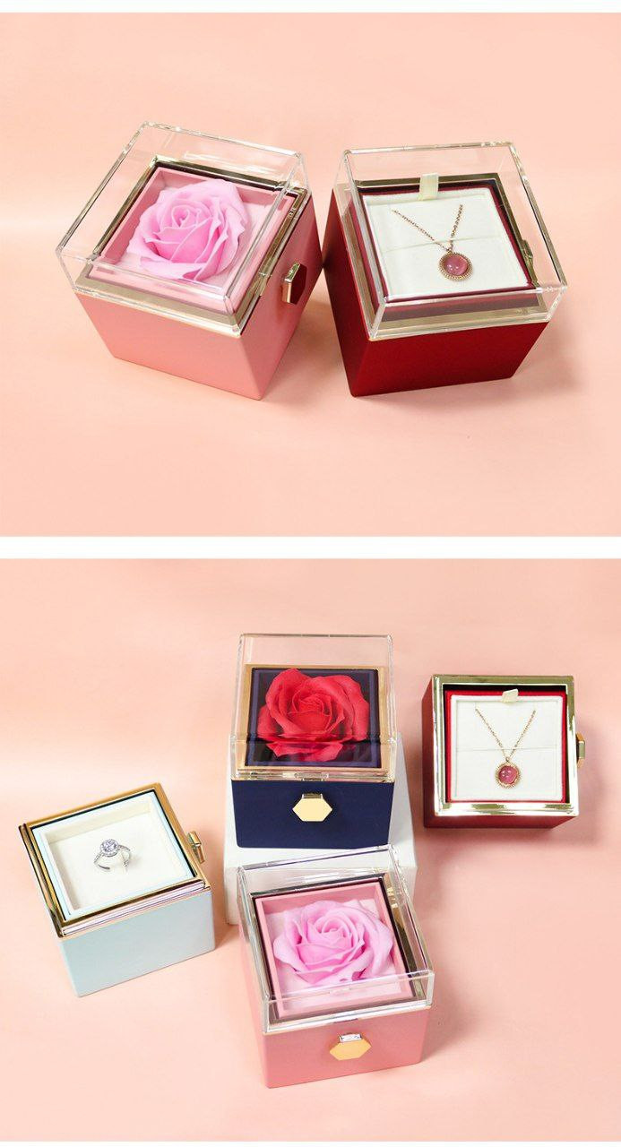 Boîte-cadeau rotative créative de fleur éternelle de la Saint-Valentin boîte à bijoux rose boîte à bagues boîte à collier boîte d'emballage de bijoux