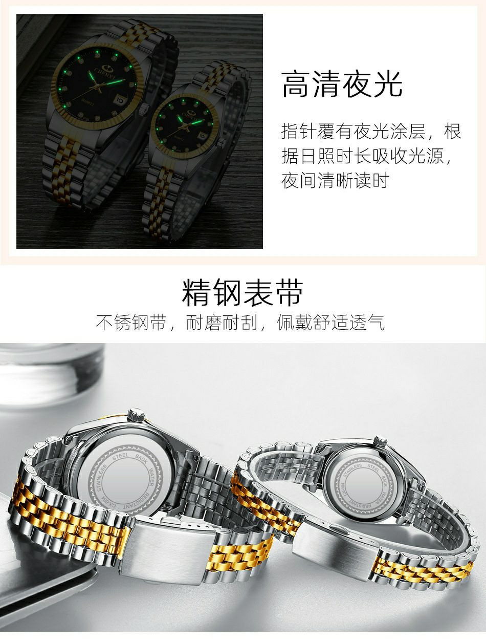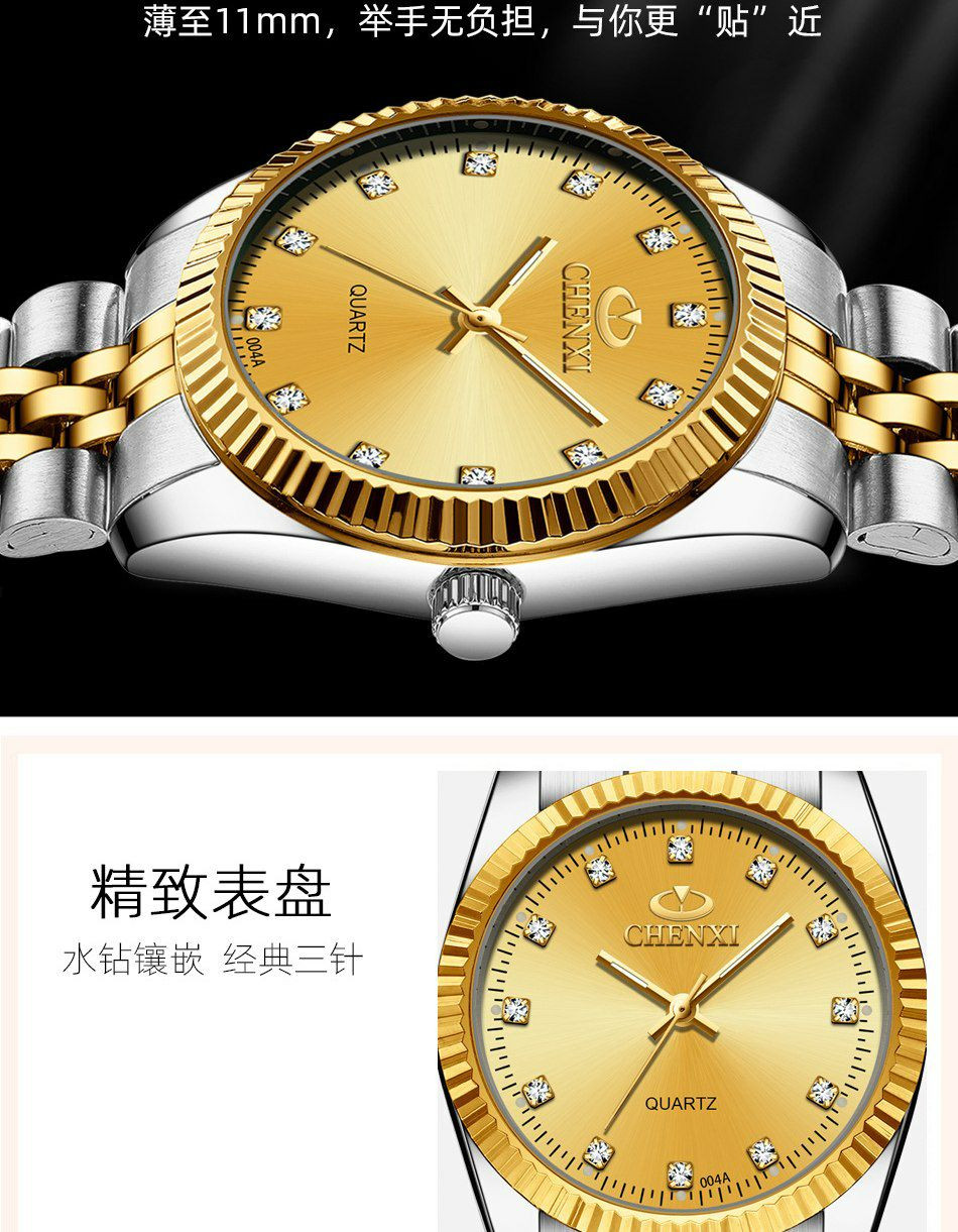 CHENXI CX-004A argent-or montre pour hommes et femmes (couple) nouveau Style bracelet en acier inoxydable étanche mouvement à Quartz hommes d'affaires montre à main