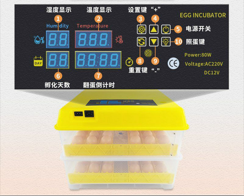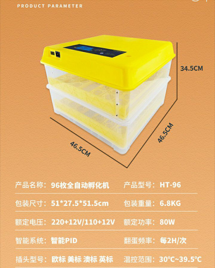 Incubateur de 96 poussins, incubateur domestique entièrement automatique, petit incubateur, incubateur d'œufs intelligent, trois fonctions dans une machine