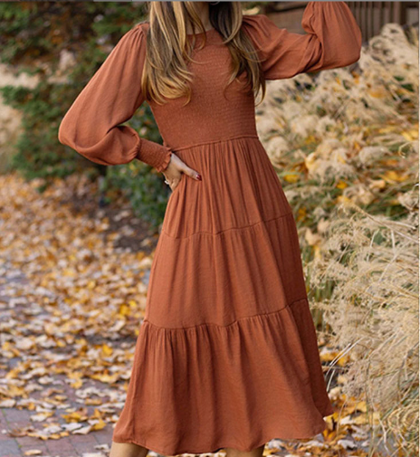 Automne et hiver nouveaux vêtements pour femmes souhaitent rétro français col rond manches lanterne nouvelle robe